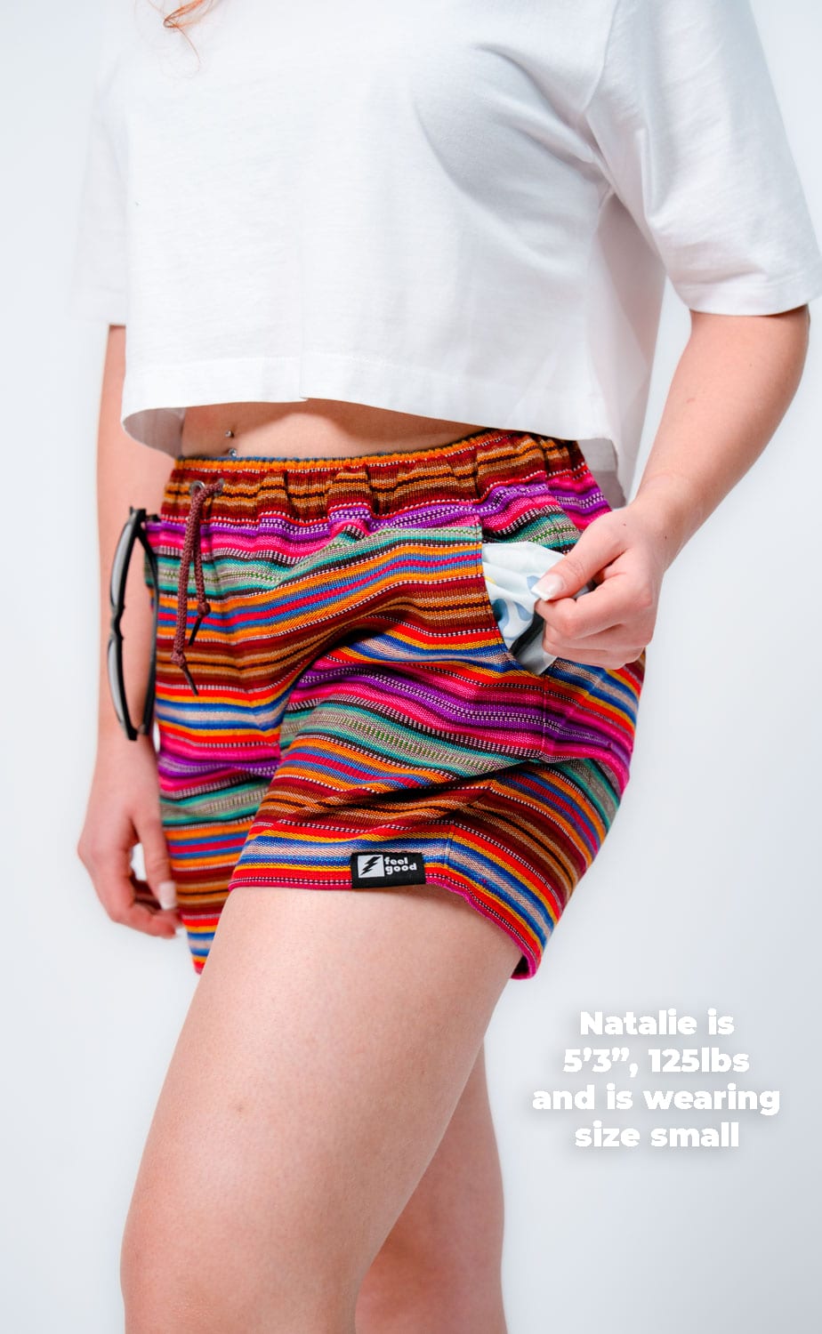 The Aurora Shorts are vibrant artisan adventure shorts inspired by the glow of dawn and the Aurora Borealis. Handwoven in Guatemala with vibrant hues, they’re soft, breathable, and built for fresh starts, bold moves, and days that shine. Every pair supports local artisans and fuels our Feel Good mission across Latin America.