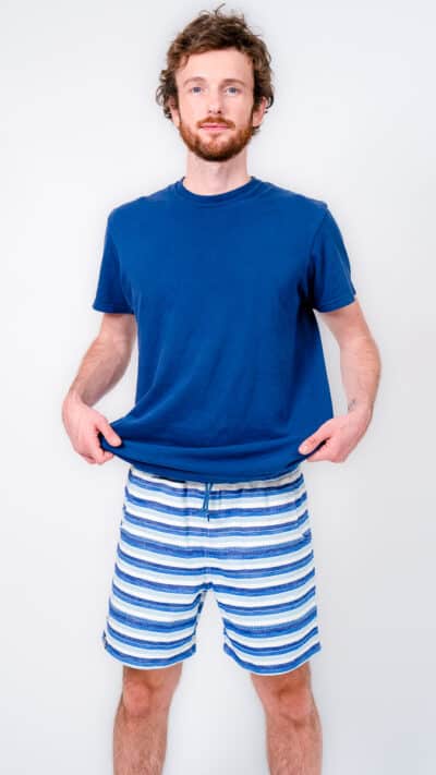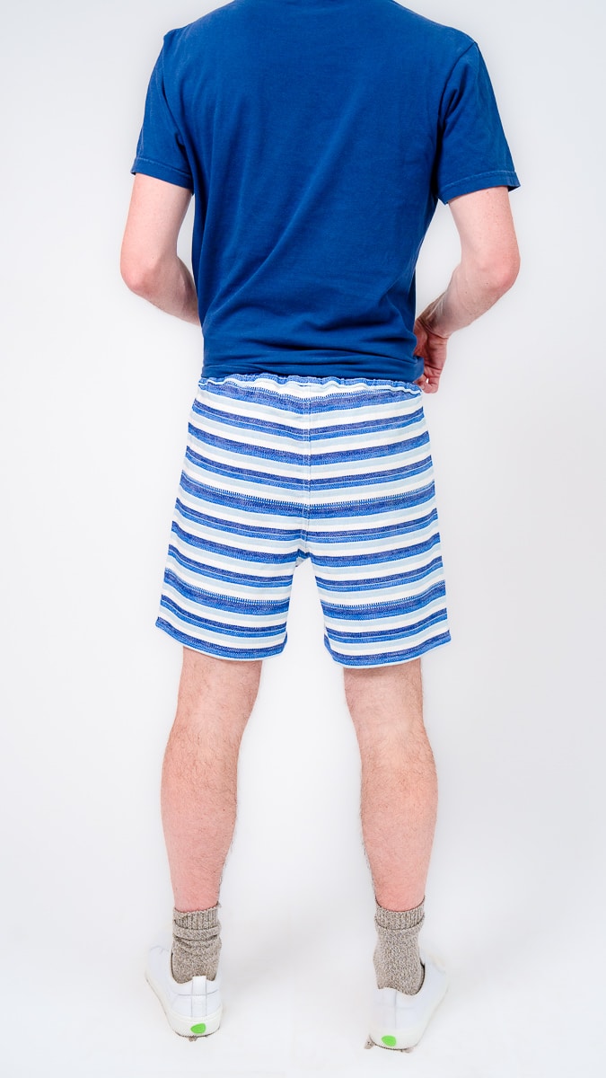 They’re designed with a relaxed, gender-neutral fit. The elastic waistband with drawstring makes them flexible for a wide range of bodies. Whether you’re tall, curvy, lean, or in between, these handwoven adventure shorts move with you. Check our sizing chart for exact measurements.