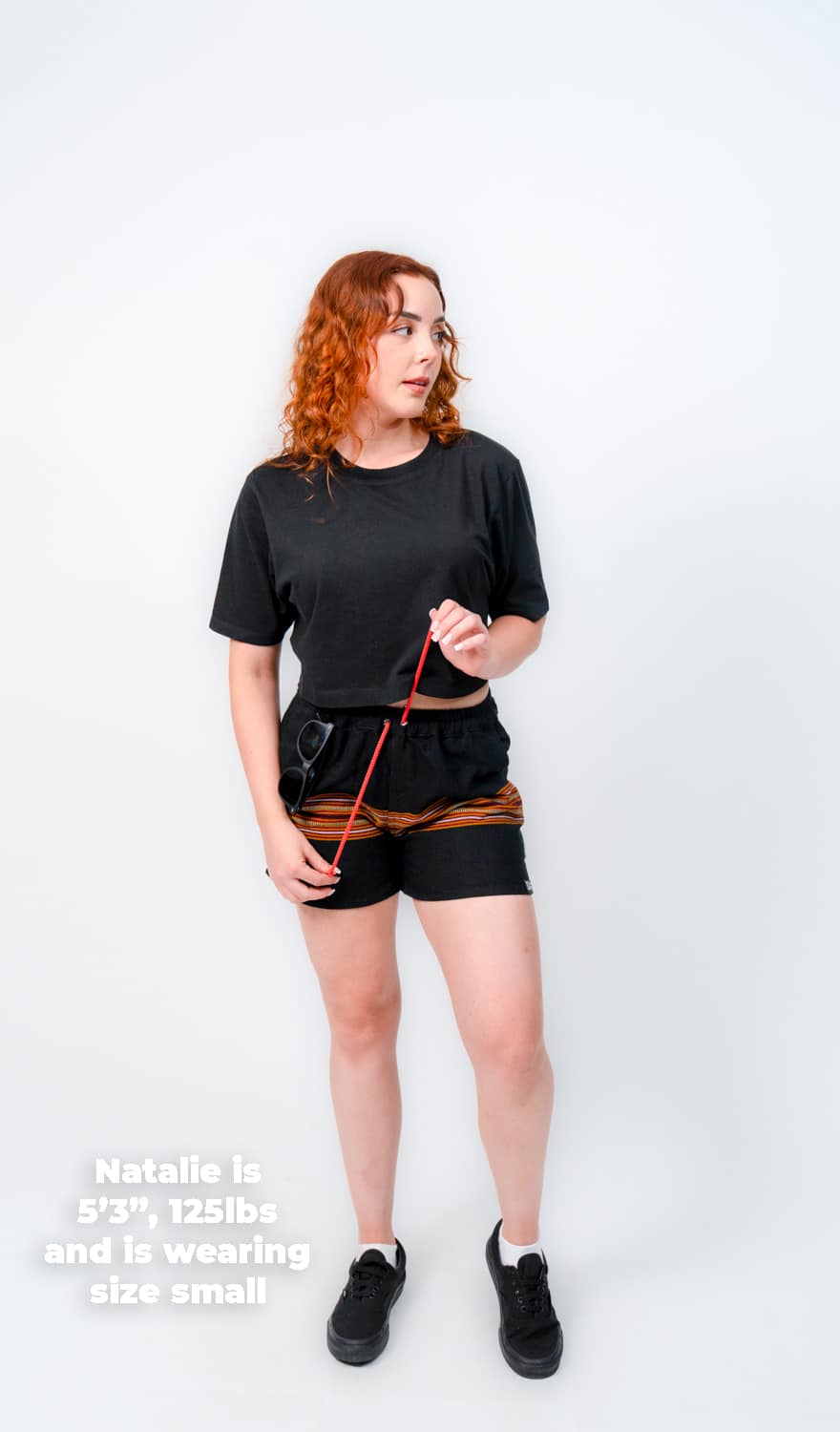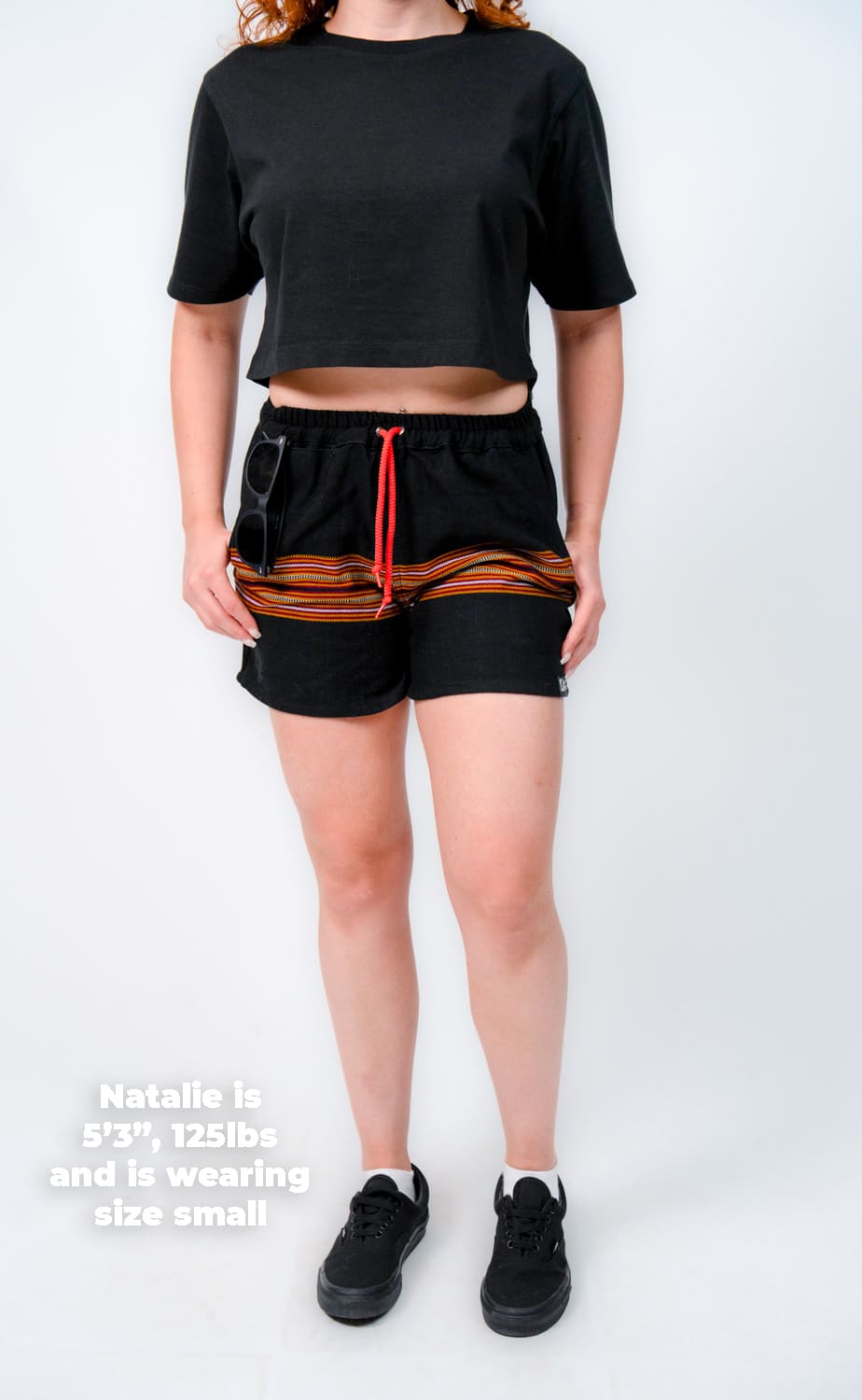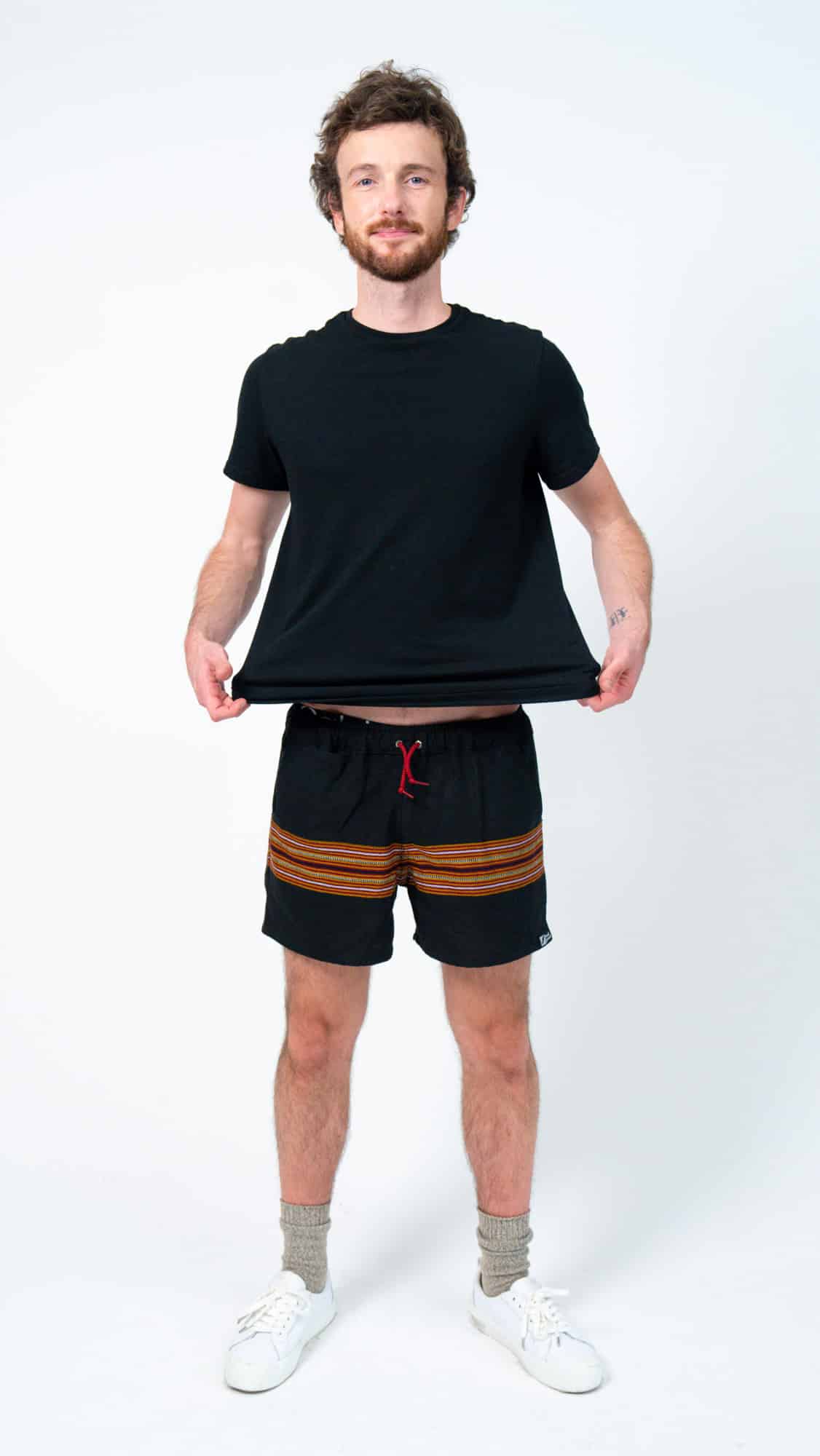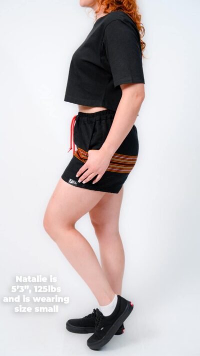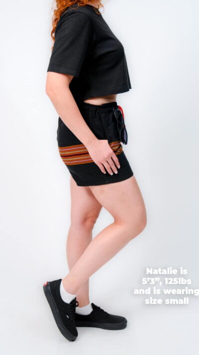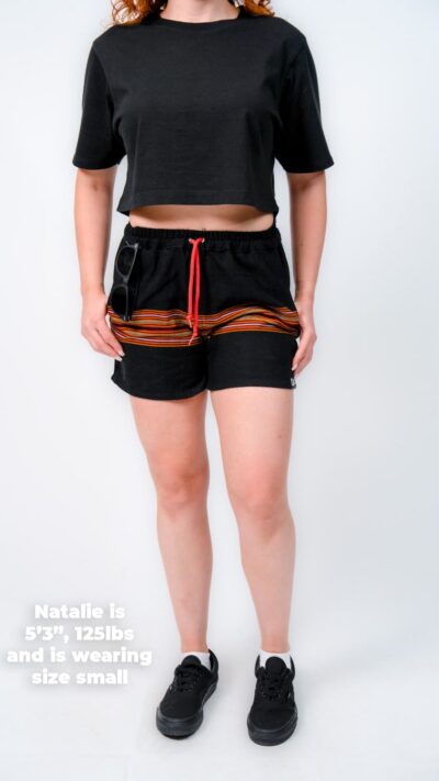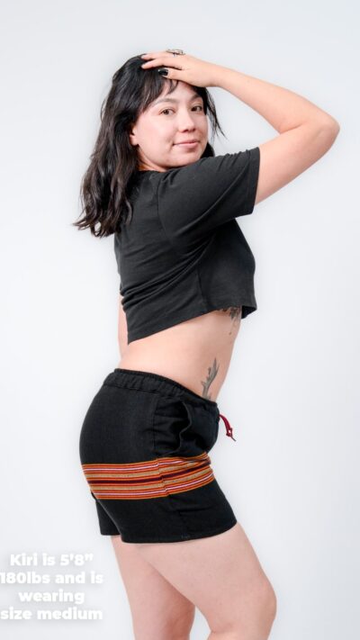 They’re designed with a relaxed, gender-neutral fit. The elastic waistband with drawstring makes them flexible for a wide range of bodies. Whether you’re tall, curvy, lean, or in between, these handwoven adventure shorts move with you. Check our sizing chart for exact measurements.