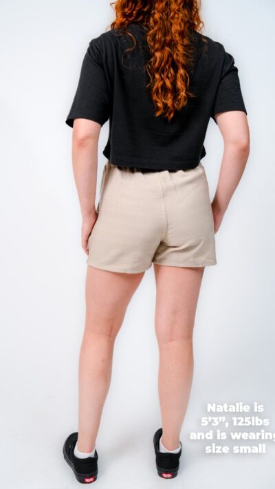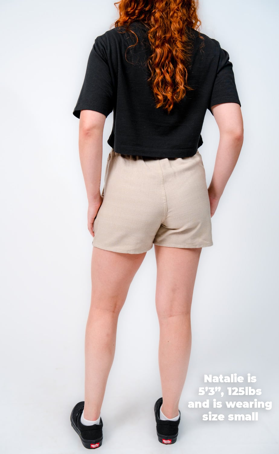 They’re designed with a relaxed, gender-neutral fit. The elastic waistband with drawstring makes them flexible for a wide range of bodies. Whether you’re tall, curvy, lean, or in between, these handwoven adventure shorts move with you. Check our sizing chart for exact measurements.
