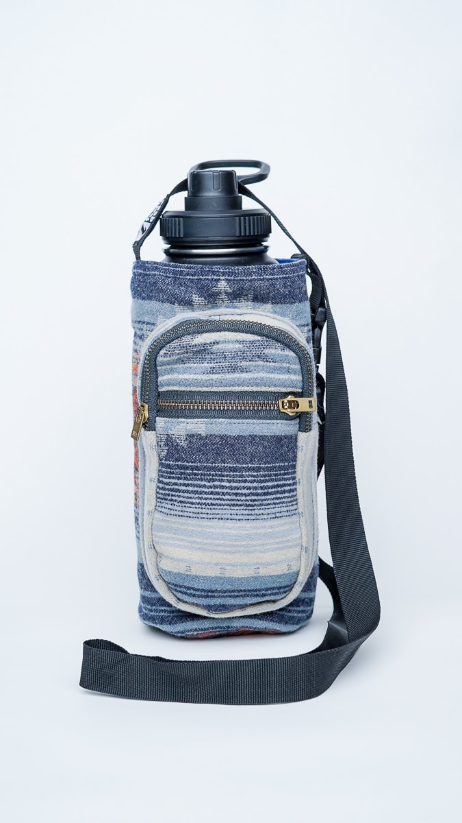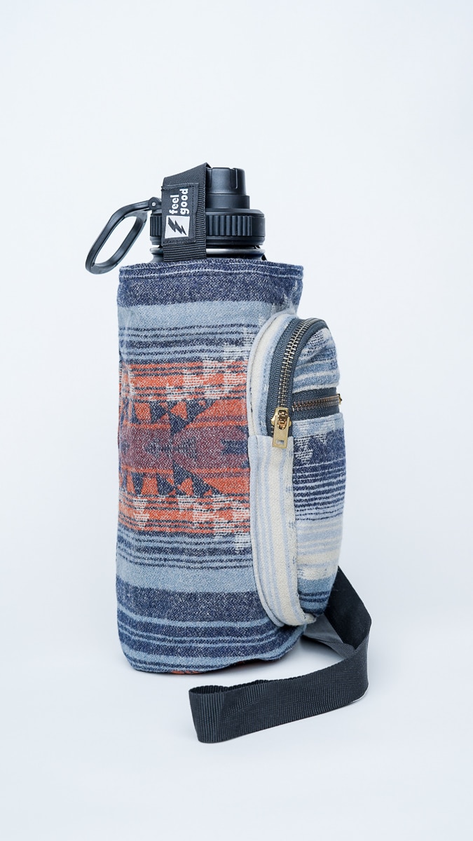 From ancient trails to modern streets, The Atlas is made for the wanderer at heart. With its earthy blues, desert oranges, and global textile influence, this bottle holder carries the spirit of discovery. It’s handwoven from durable, soft wool-blend fabric and includes two functional front pockets—one sized for your essentials like keys and cards, the other for stashing trail snacks, coins, or AirPods. The adjustable strap ensures a comfortable fit over the shoulder or across the body, whether you’re navigating festivals, farmers markets, or foreign cities. Each one supports artisan weavers in Guatemala and keeps single-use plastic out of the picture. Practical. Beautiful. Built for the road ahead.