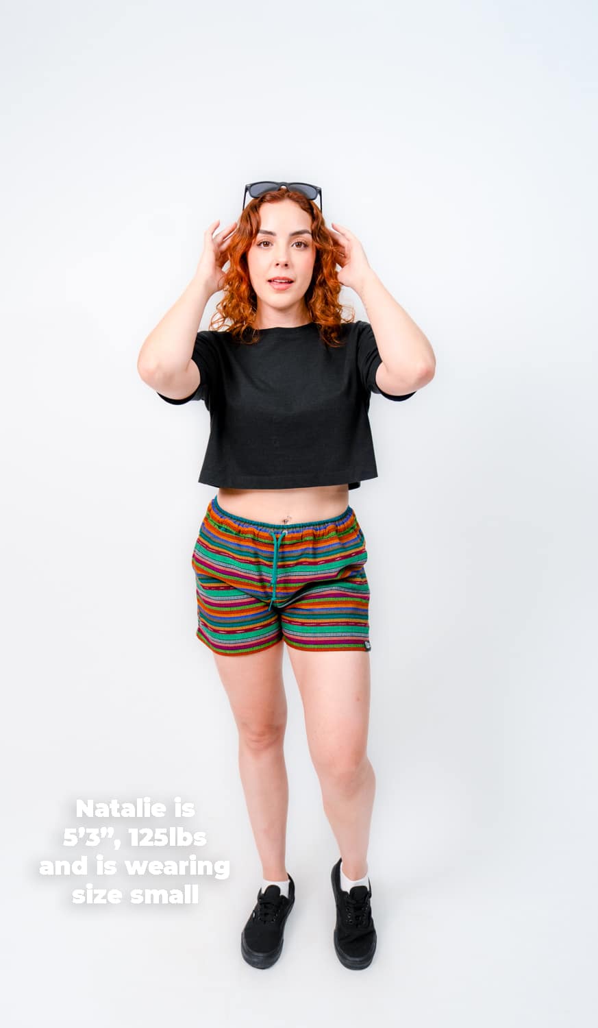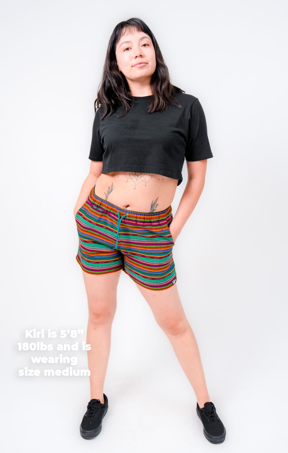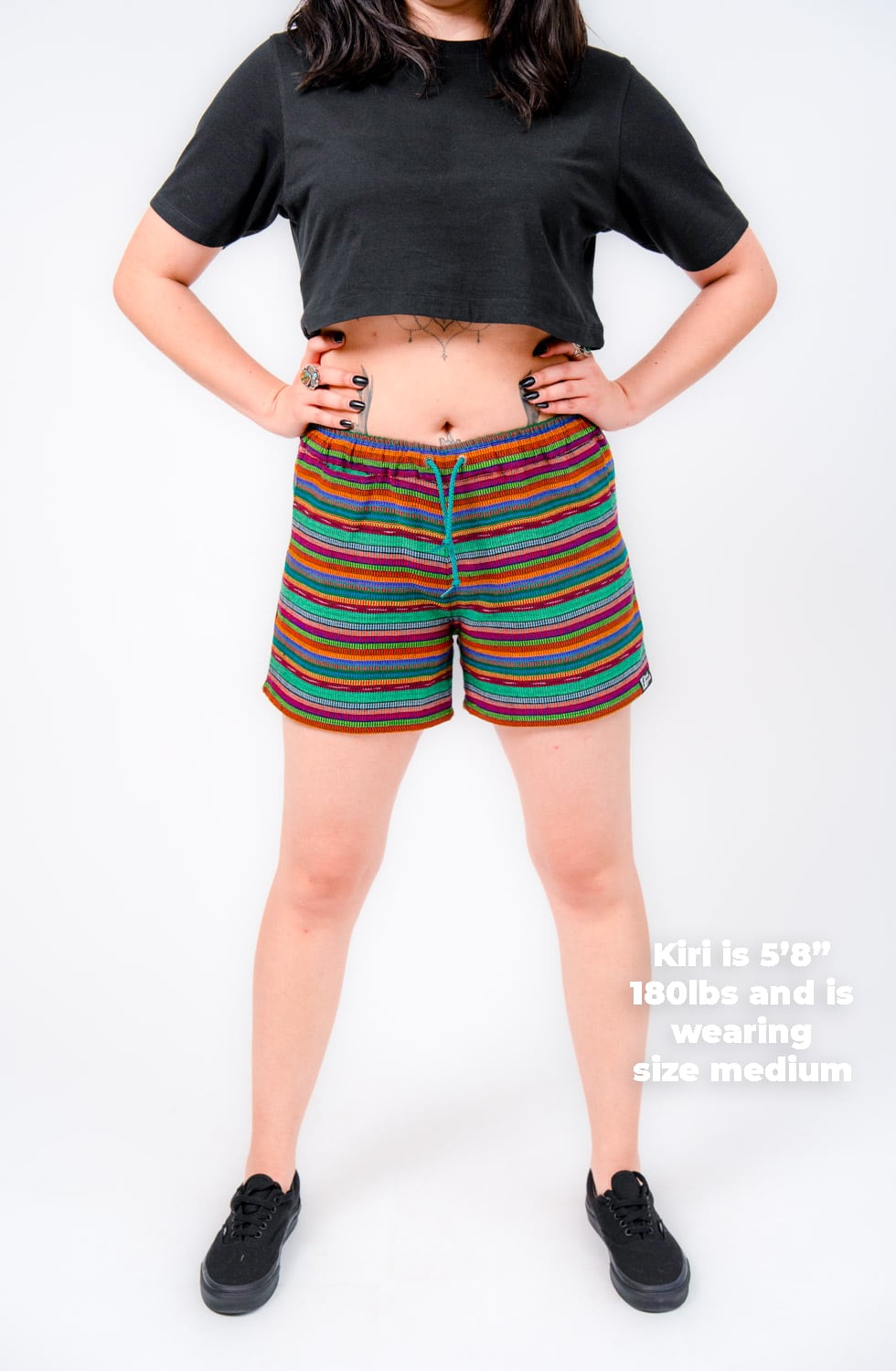 They’re designed with a relaxed, gender-neutral fit. The elastic waistband with drawstring makes them flexible for a wide range of bodies. Whether you’re tall, curvy, lean, or in between, these handwoven adventure shorts move with you. Check our sizing chart for exact measurements.