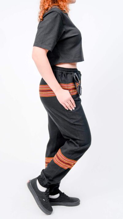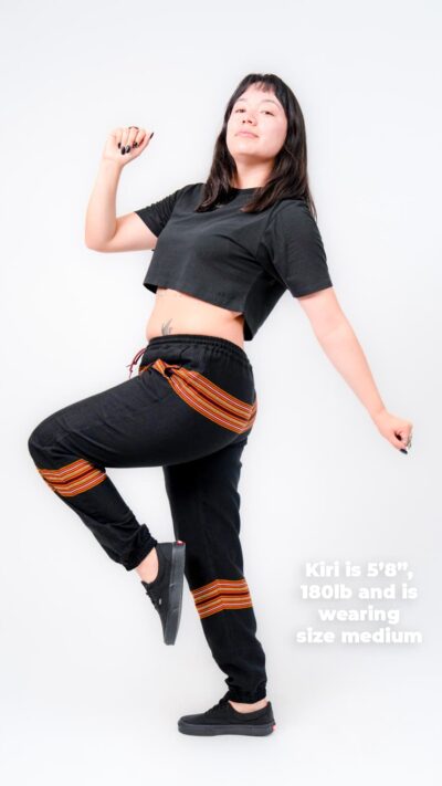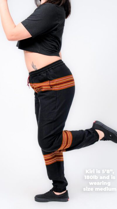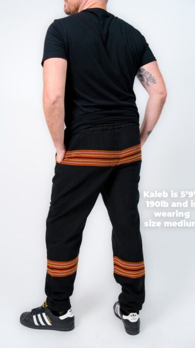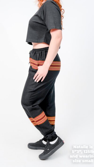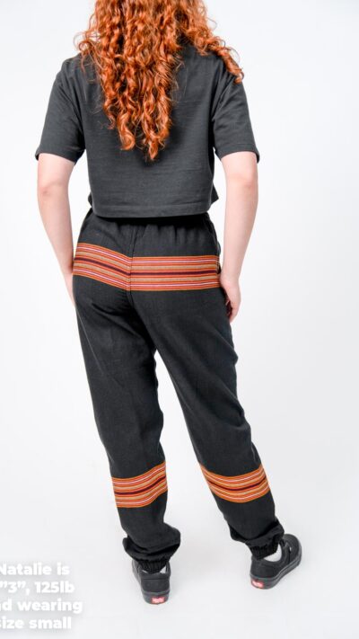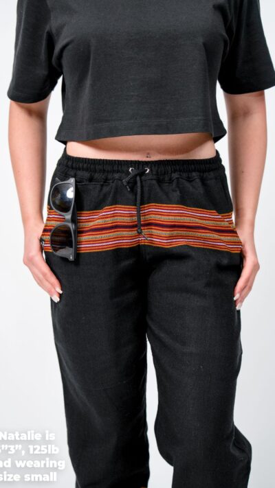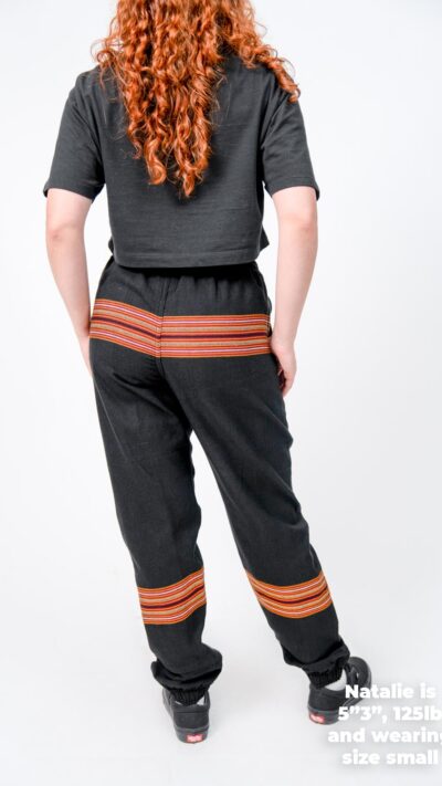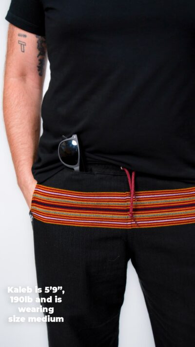 Feel Good Pants are crafted from a breathable, handwoven 50/50 cotton-acrylic blend sourced from artisan cooperatives in Guatemala. The fabric is soft, durable, and naturally odor-resistant — perfect for lounging, travel, or off-grid adventures. No two pairs are exactly alike, thanks to the slow art of foot loom weaving. These cozy handmade adventure pants break in like your favorite jeans, only more comfortable. They’re made to move, made to last, and made to mean something.