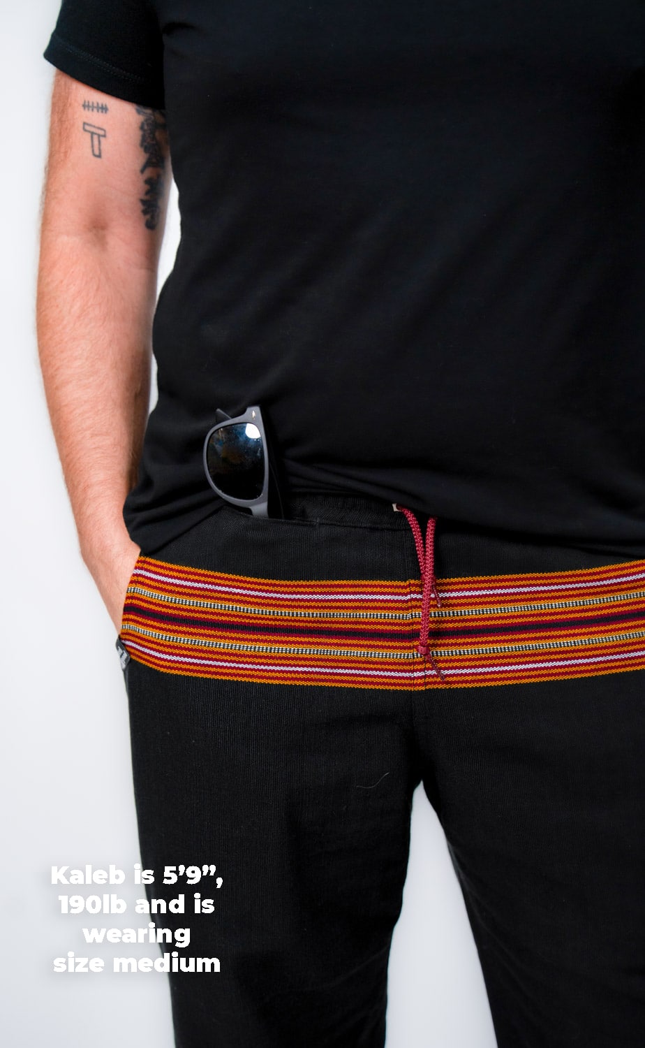 Handwoven in Guatemala with durable care, these pants are built to hold up through endless fireside nights and sunrise hikes.