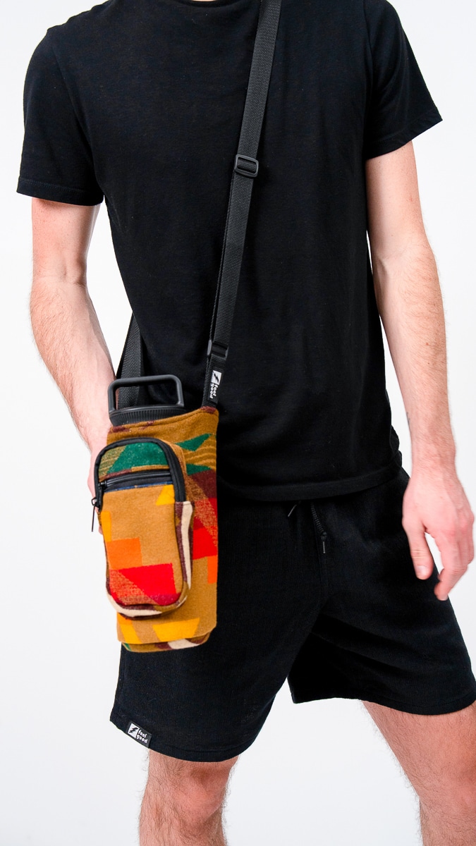 Built to move with you, The Elements features a roomy bottle sleeve, zippered front pouch for your phone, and an extra pocket for coins, cards, or keys. It’s finished with an adjustable strap for hands-free adventures.
