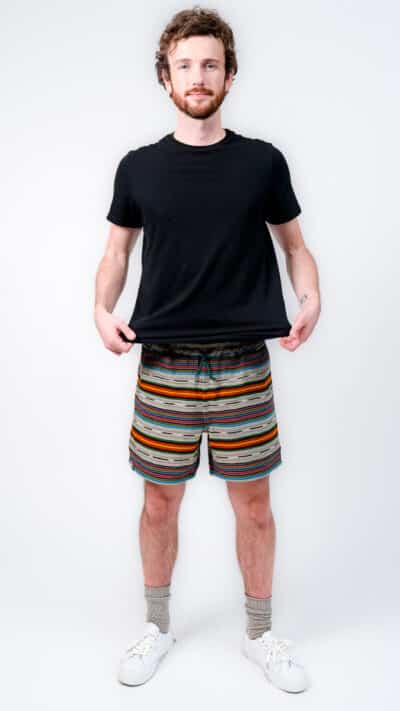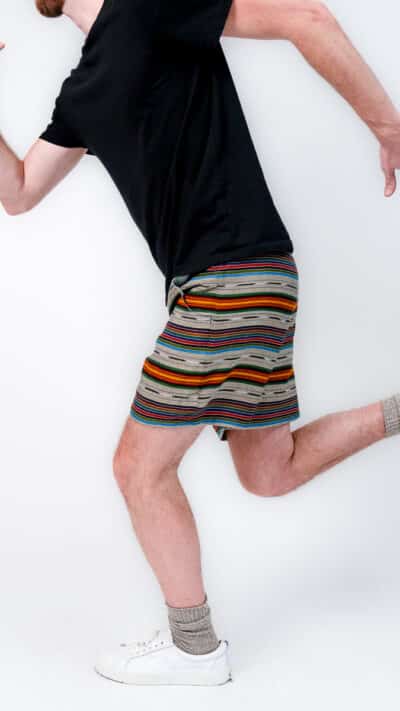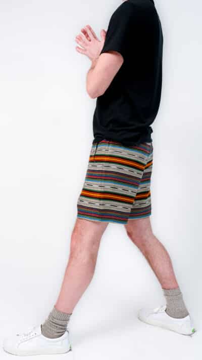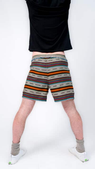 They’re designed with a relaxed, gender-neutral fit. The elastic waistband with drawstring makes them flexible for a wide range of bodies. Whether you’re tall, curvy, lean, or in between, these handwoven adventure shorts move with you. Check our sizing chart for exact measurements.