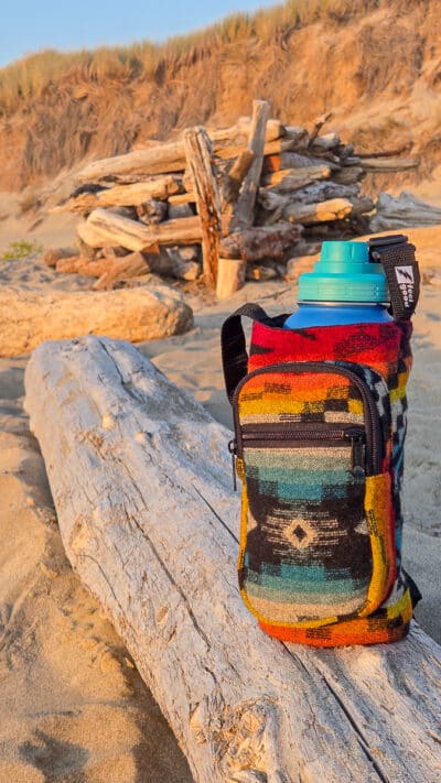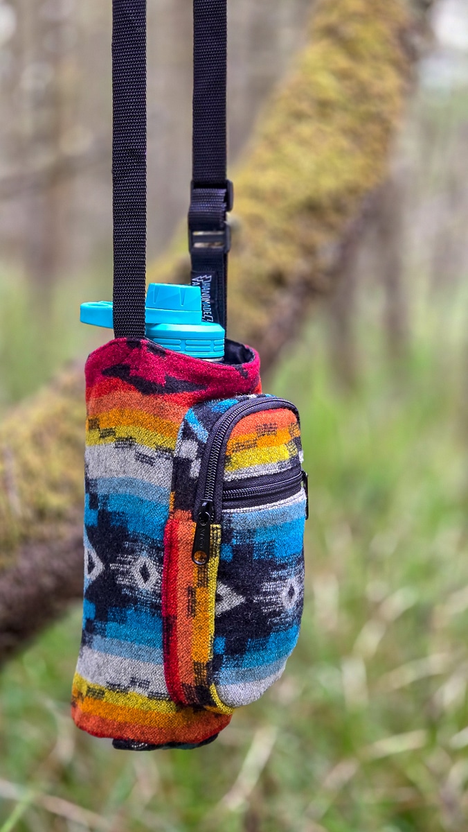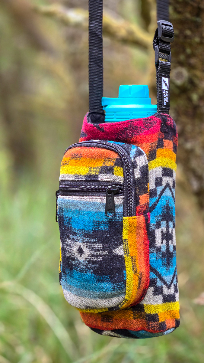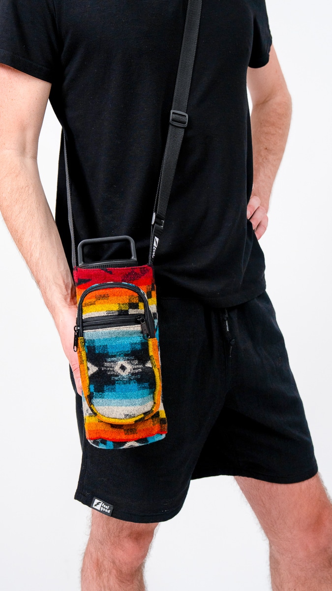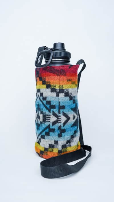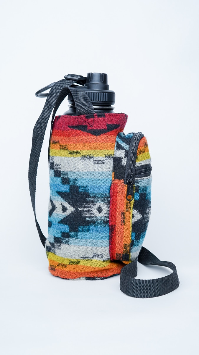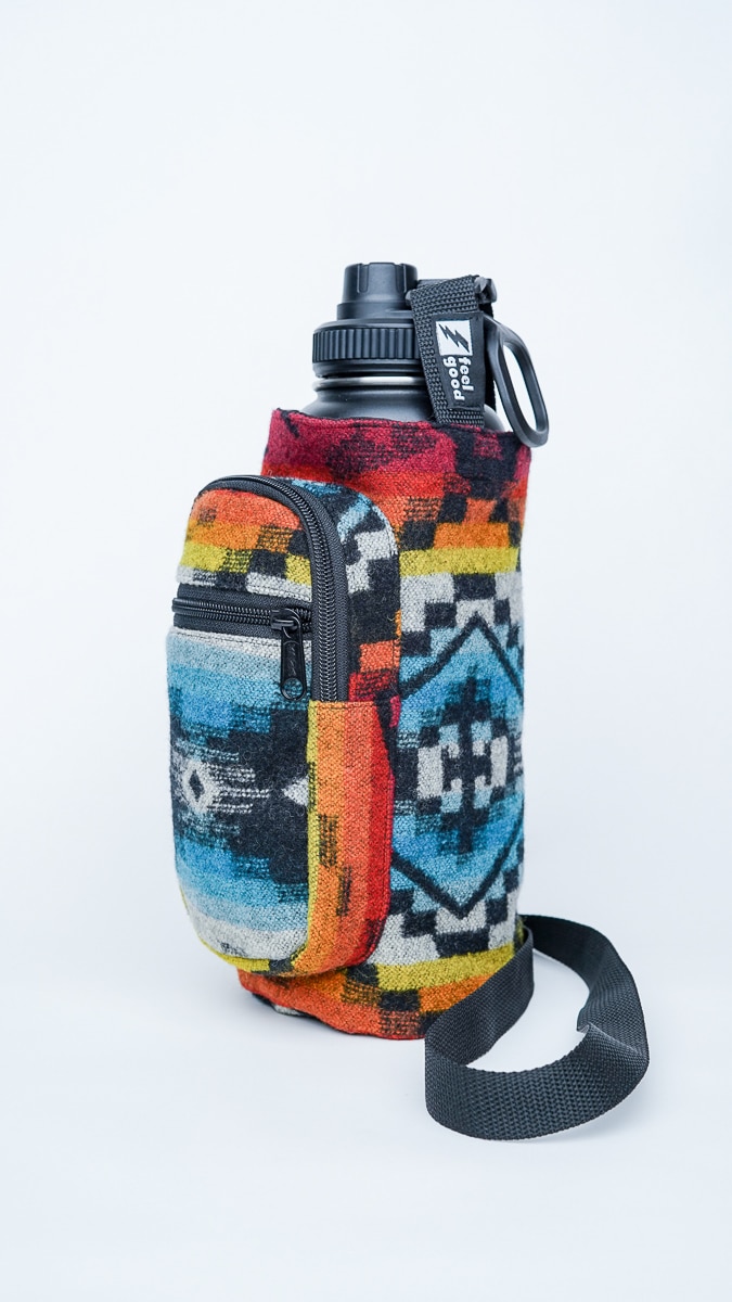 Crafted for color lovers and everyday explorers, The Equinox Pendleton bottle holder is a vibrant celebration of balance, rhythm, and handmade style. Its bold, geometric design fuses bright reds, blues, oranges, and yellows into a piece that feels alive—like the moment day and night meet.