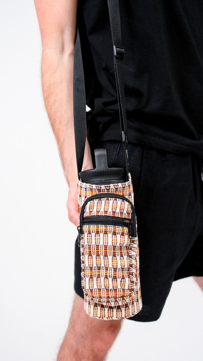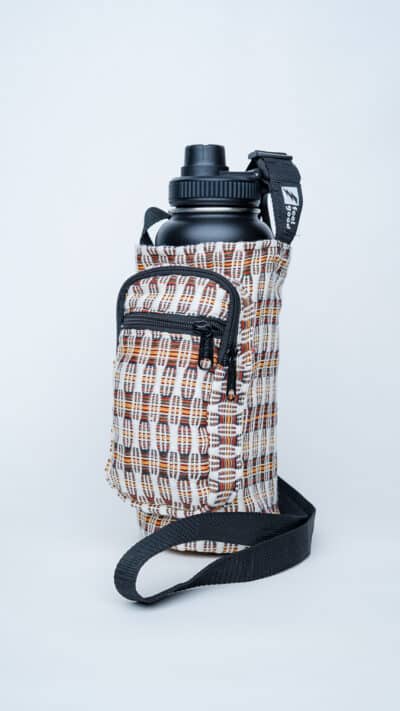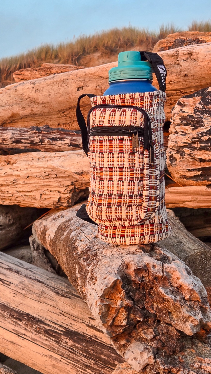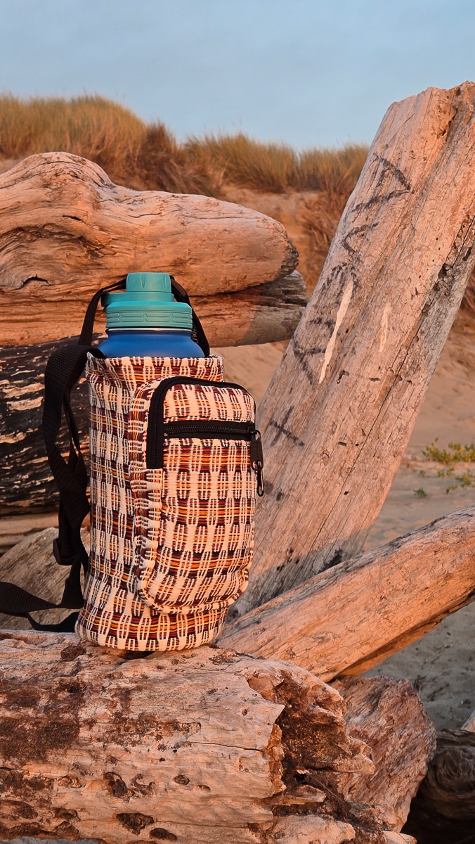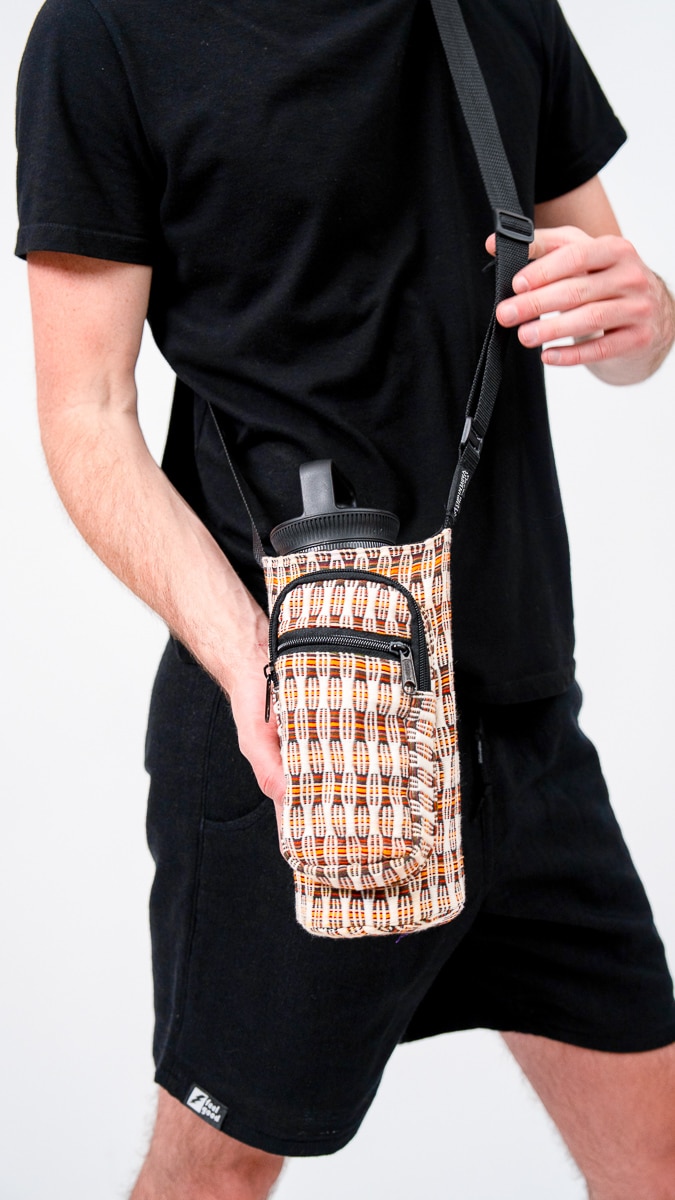 The Kalahari brings the colors of sunbaked sands, volcanic stone, and rich clay into one striking design. Handwoven by artisans in Guatemala, each bottle holder is crafted from traditional textile patterns and sewn to fit your next adventure. A zippered front pocket keeps your essentials close, while the adjustable strap makes it easy to carry hands-free.