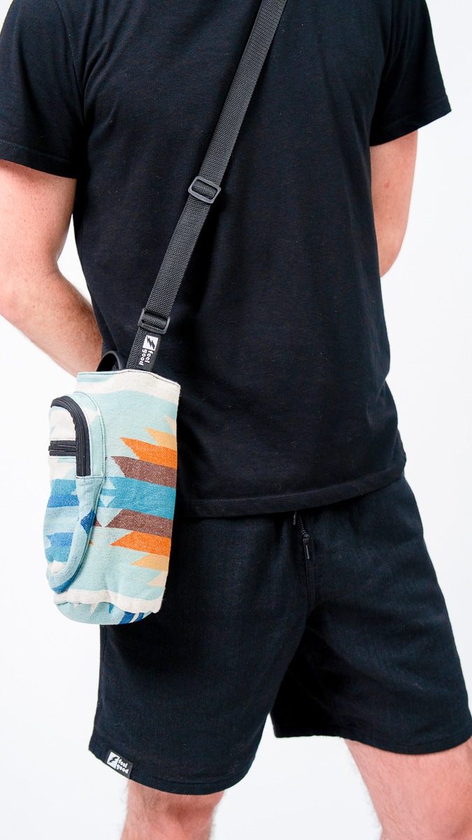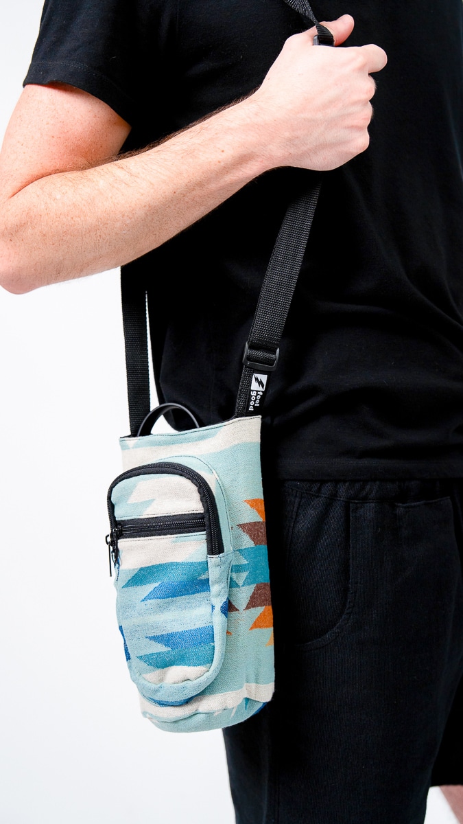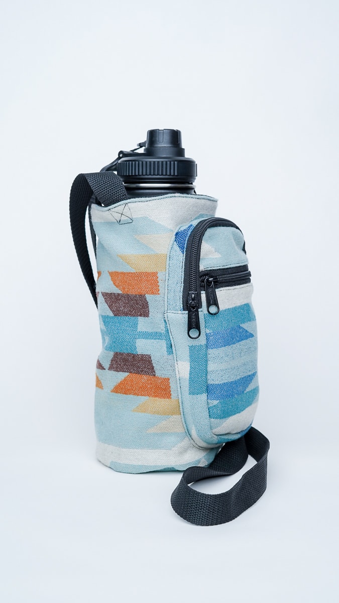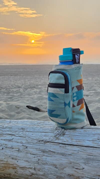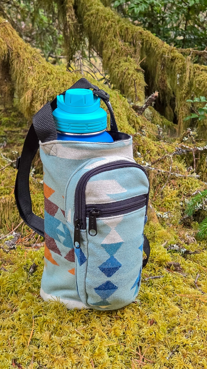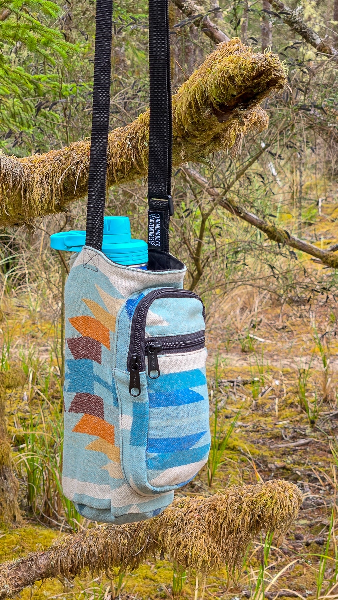 The Kanab is a sun washed Pendleton bottle holder with soft desert tones, artisan details, and a uniquely hand-cut pattern.  No two are alike.