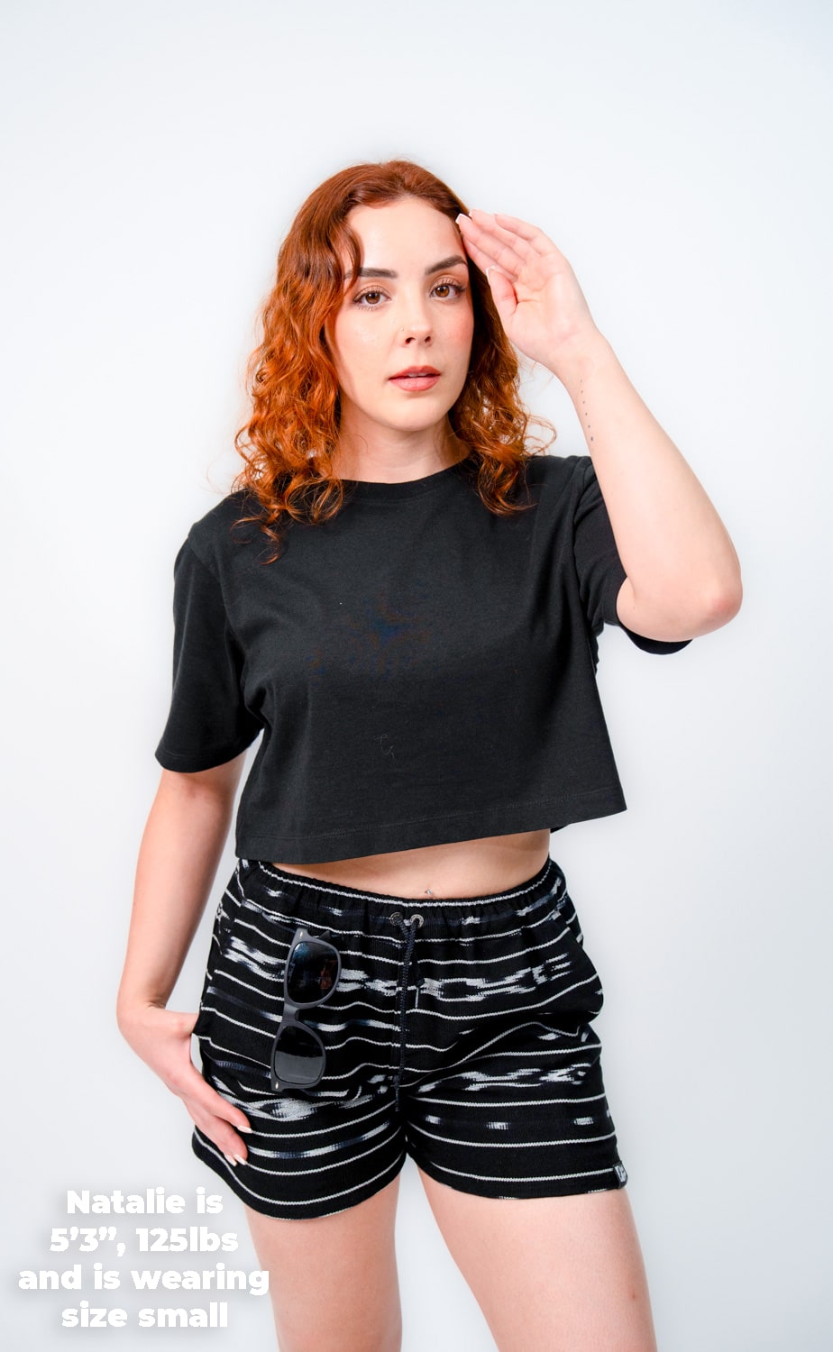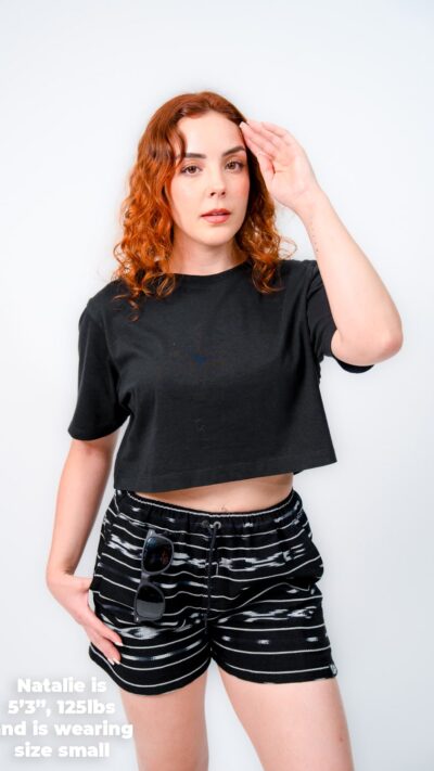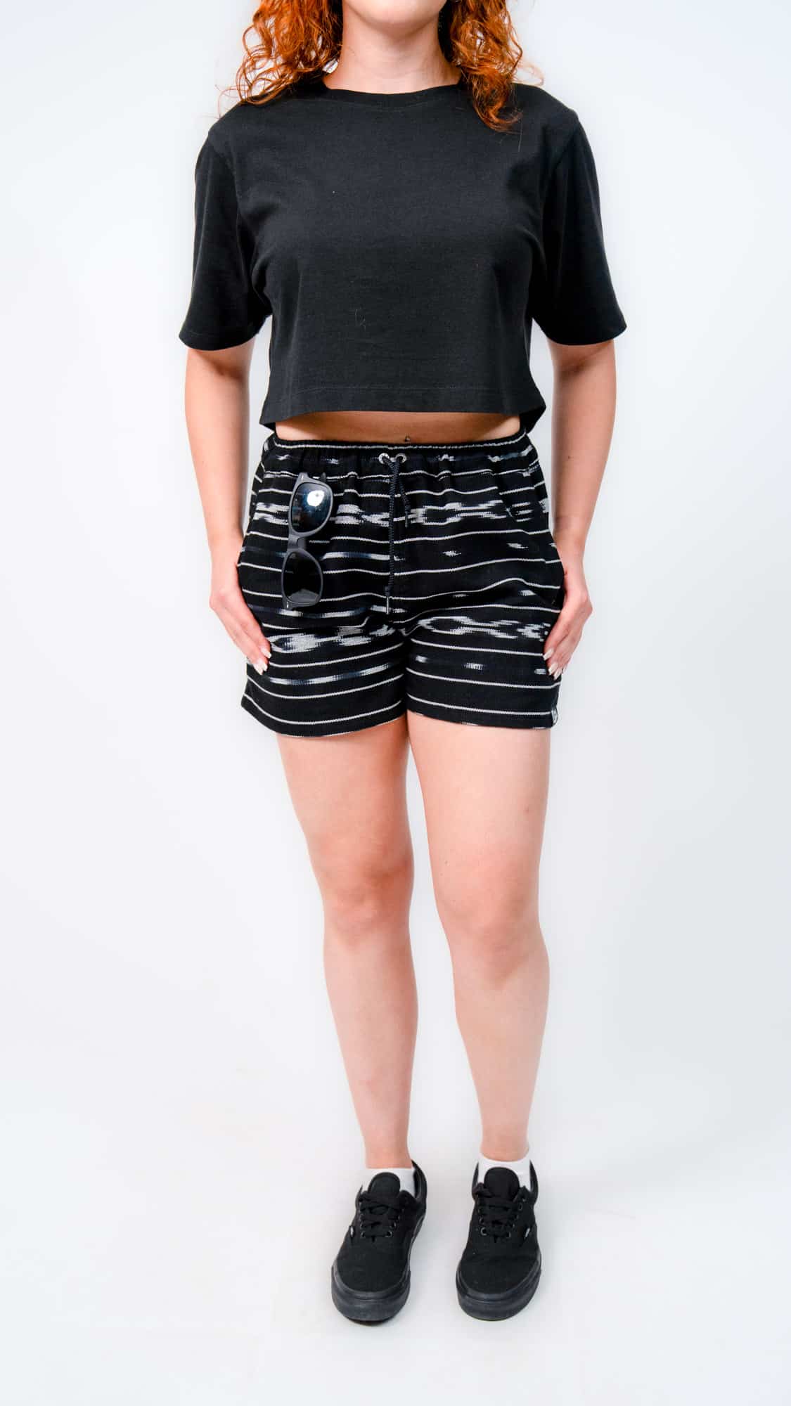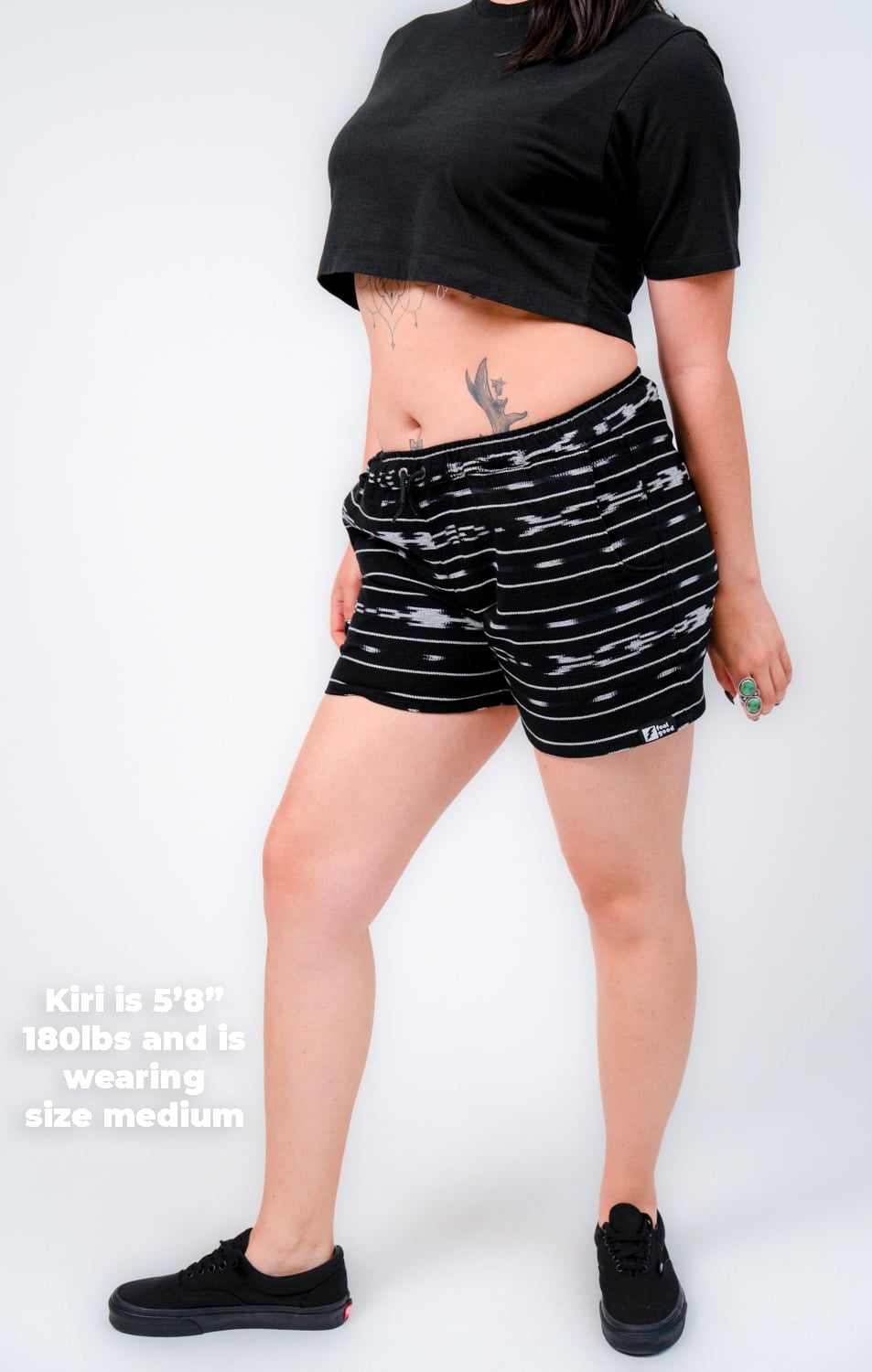 They’re designed with a relaxed, gender-neutral fit. The elastic waistband with drawstring makes them flexible for a wide range of bodies. Whether you’re tall, curvy, lean, or in between, these handwoven adventure shorts move with you. Check our sizing chart for exact measurements.