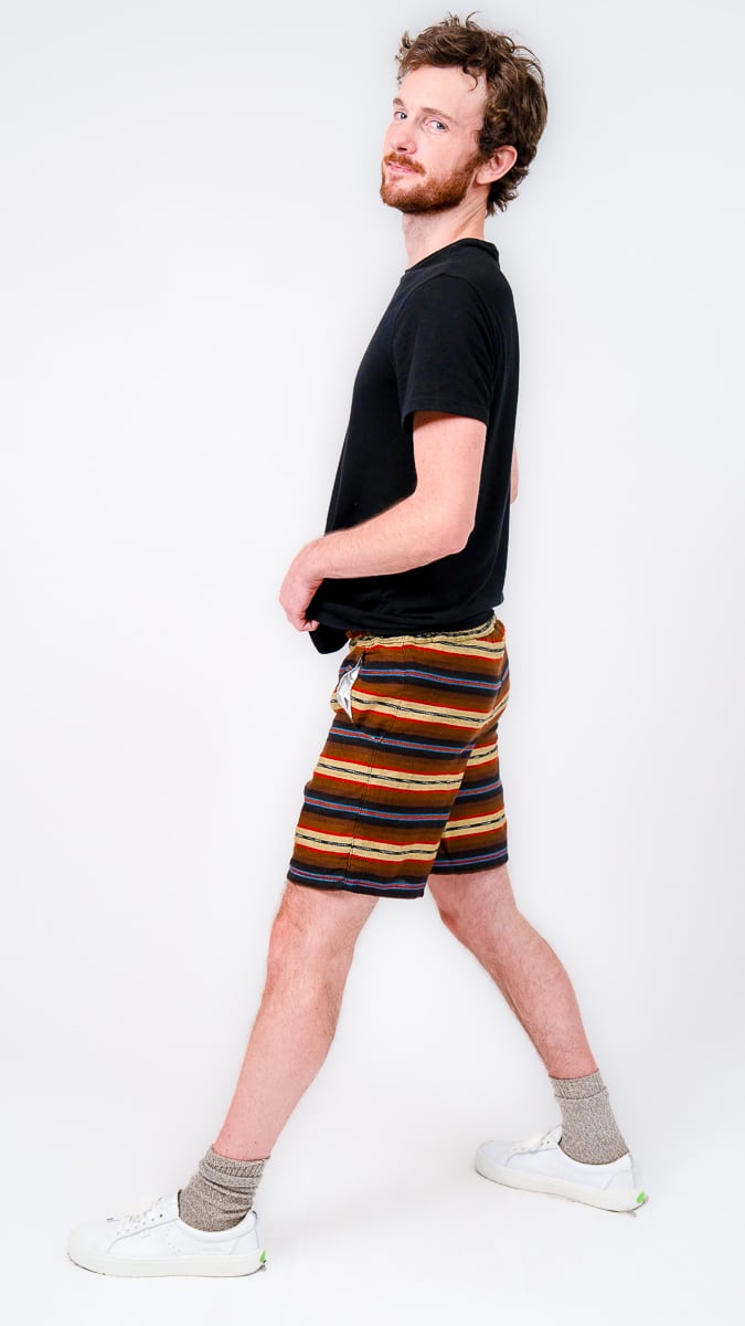 They’re designed with a relaxed, gender-neutral fit. The elastic waistband with drawstring makes them flexible for a wide range of bodies. Whether you’re tall, curvy, lean, or in between, these handwoven adventure shorts move with you. Check our sizing chart for exact measurements.
