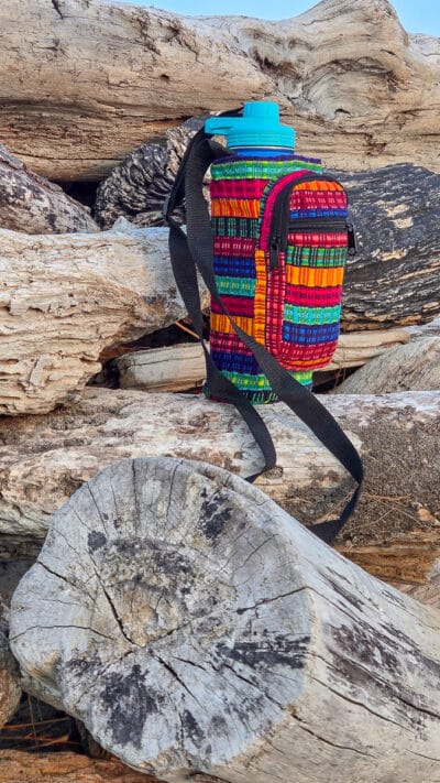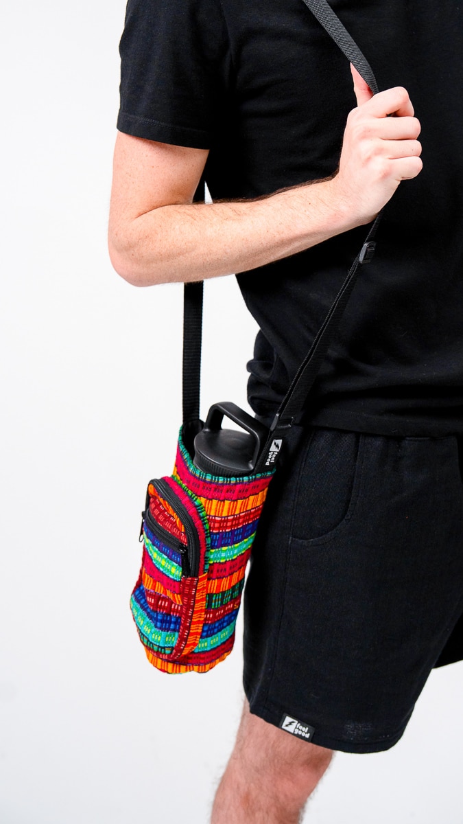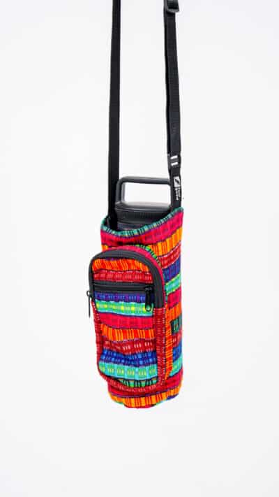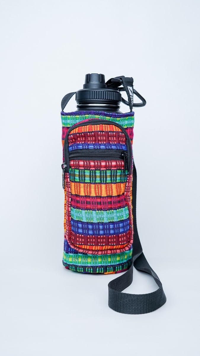 Whether you’re heading to a festival, the farmer’s market, or just around the block, this handwoven bottle holder keeps your essentials close and your style unmistakable. It features an adjustable strap, zippered front pouch for keys or cash, and a durable main compartment that fits your favorite reusable bottle.