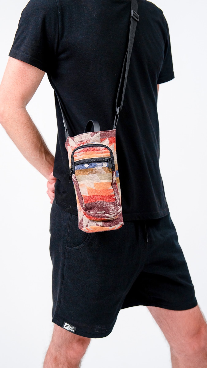 It includes a phone-sized front pocket, a zip pouch for small essentials, and an adjustable strap to sling over your shoulder or across your chest. Built for wandering. Made to last.