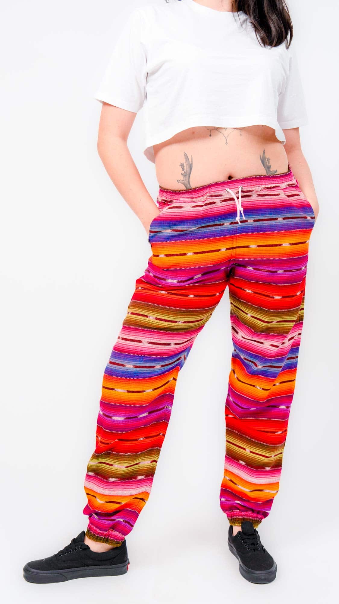 Expertly handwoven in Guatemala, these rainbow pants are made to move with you — from festivals to freedom marches to lazy days under the sun.