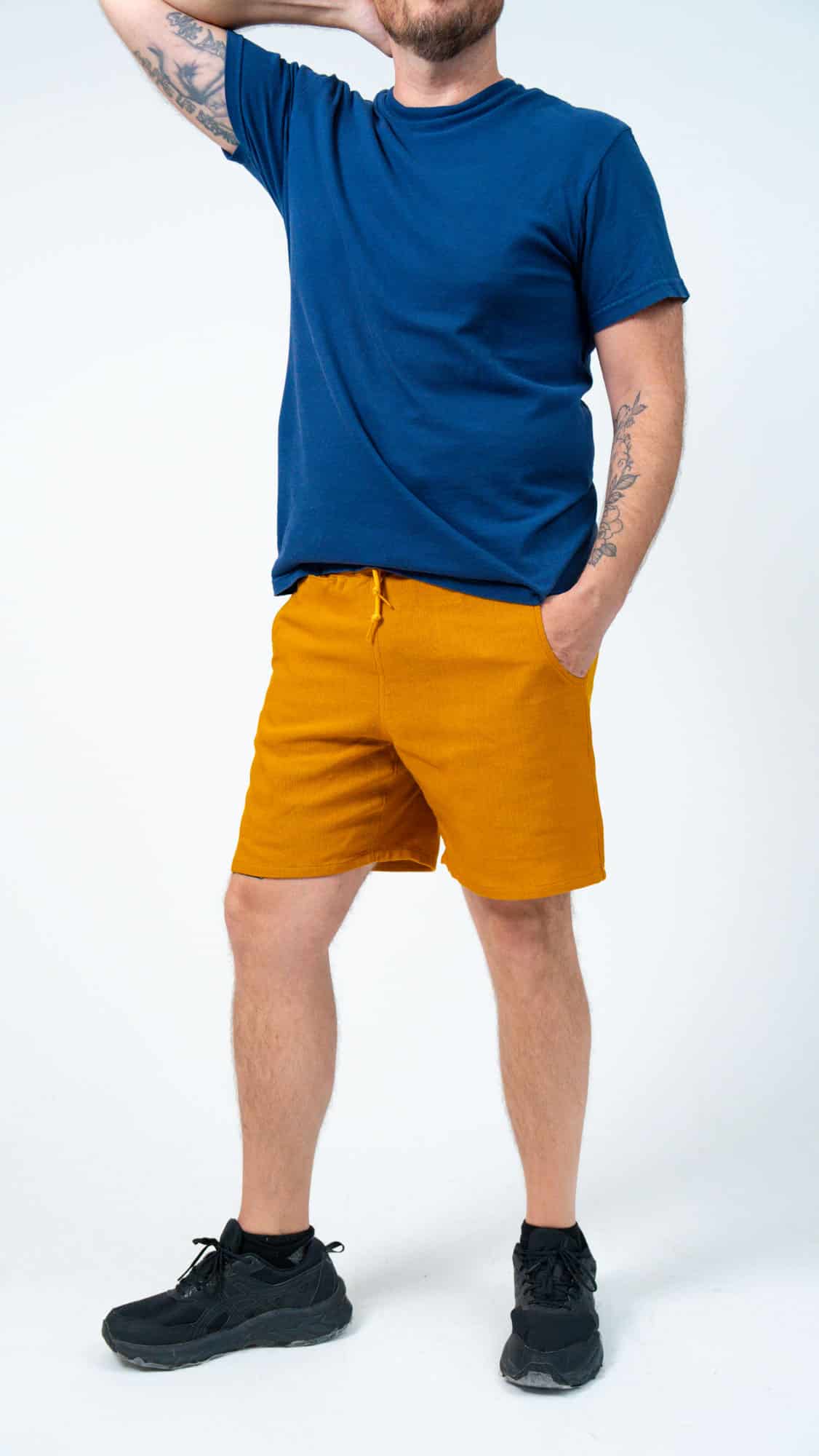 They’re designed with a relaxed, gender-neutral fit. The elastic waistband with drawstring makes them flexible for a wide range of bodies. Whether you’re tall, curvy, lean, or in between, these handwoven adventure shorts move with you. Check our sizing chart for exact measurements.