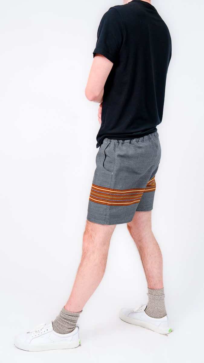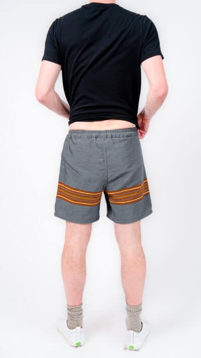 They’re designed with a relaxed, gender-neutral fit. The elastic waistband with drawstring makes them flexible for a wide range of bodies. Whether you’re tall, curvy, lean, or in between, these handwoven adventure shorts move with you. Check our sizing chart for exact measurements.